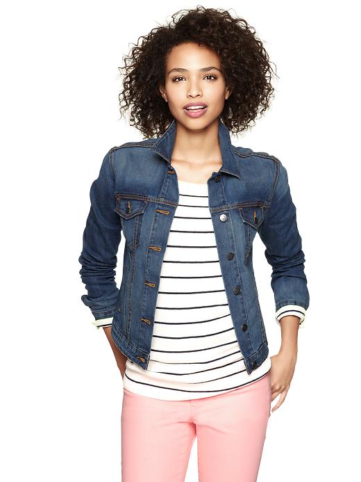 At a great price point and it really isn’t very different from its cousin at The Gap. The fabric content has a little bit of poly in the mix so it is a bit softer right away. Extra bonus points because the jacket is available in plus, tall, and petite sizing.